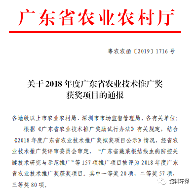 我司作為華南農(nóng)業(yè)大學合作單位之一,參與“修復農(nóng)田土壤污染的能源作物品種篩選及其配套技術應用項目”取得了良好的綜合效益,根據(jù)《廣東省農(nóng)業(yè)技術推廣獎勵試行辦法》有關規(guī)定,經(jīng)省農(nóng)業(yè)技術推廣獎評審委員會審定,該項目獲得2018年度廣東省農(nóng)業(yè)技術推廣二等獎(粵農(nóng)農(nóng)函〔2019〕1716 號)。