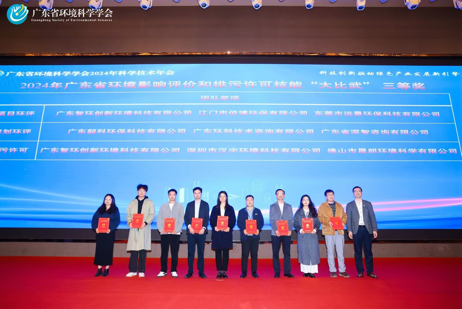 我司承接的“乳源瑤族自治縣生態(tài)環(huán)境保護(hù)委員會辦公室環(huán)保管家服務(wù)項目”成功入選“2024年度廣東省環(huán)保管家服務(wù)示范案例”。在廣東省生態(tài)環(huán)境廳指導(dǎo)、廣東省環(huán)境科學(xué)學(xué)會主辦的“2024年廣東省環(huán)境影響評價和排污許可技能“大比武”中,我司憑借扎實的專業(yè)知識儲備和默契的團(tuán)隊協(xié)作配合榮獲排污許可組團(tuán)隊一等獎、規(guī)劃環(huán)評組團(tuán)體三等獎以及項目環(huán)評組團(tuán)體優(yōu)勝獎,我司技術(shù)人員魯蓉蓉榮獲排污許可證組個人二等獎、孟建斌和林達(dá)龍分別榮獲規(guī)劃環(huán)評組個人二等獎和優(yōu)勝獎、項目環(huán)評組侯少東榮獲個人優(yōu)勝獎。
